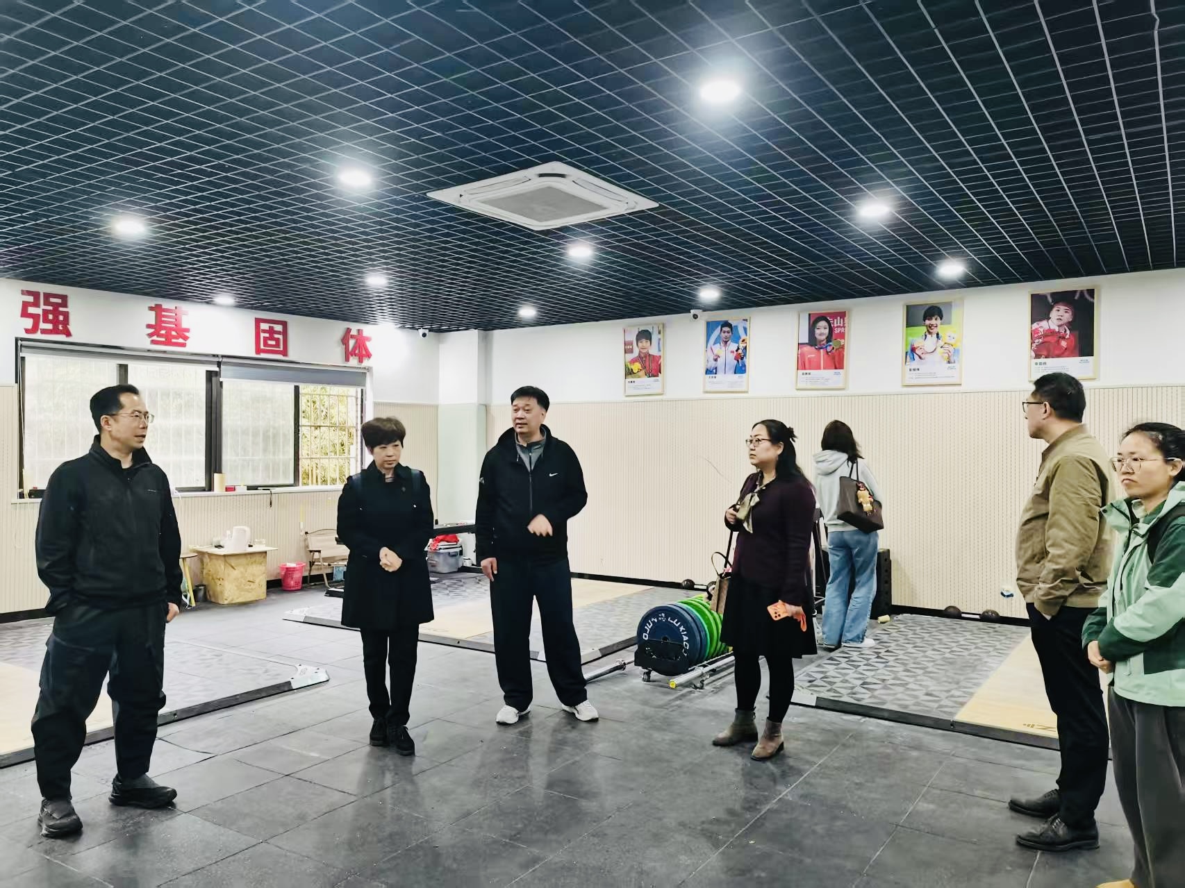 抵达中心后,国家级社区运动健康中心康复训练师、洪山中心技术支持专家郭舟热情接待了我院一行。在郭舟专家的带领下,调研团队实地参观了中心的体能训练区、康复治疗区及国民体质监测室等功能区域,详细了解了中心的运营模式、服务特色及人才需求情况。郭舟专家重点介绍了中心在社区运动康复、体质健康干预等领域的实践成果,以及对康复治疗专业人才的专业素养与实践能力要求。