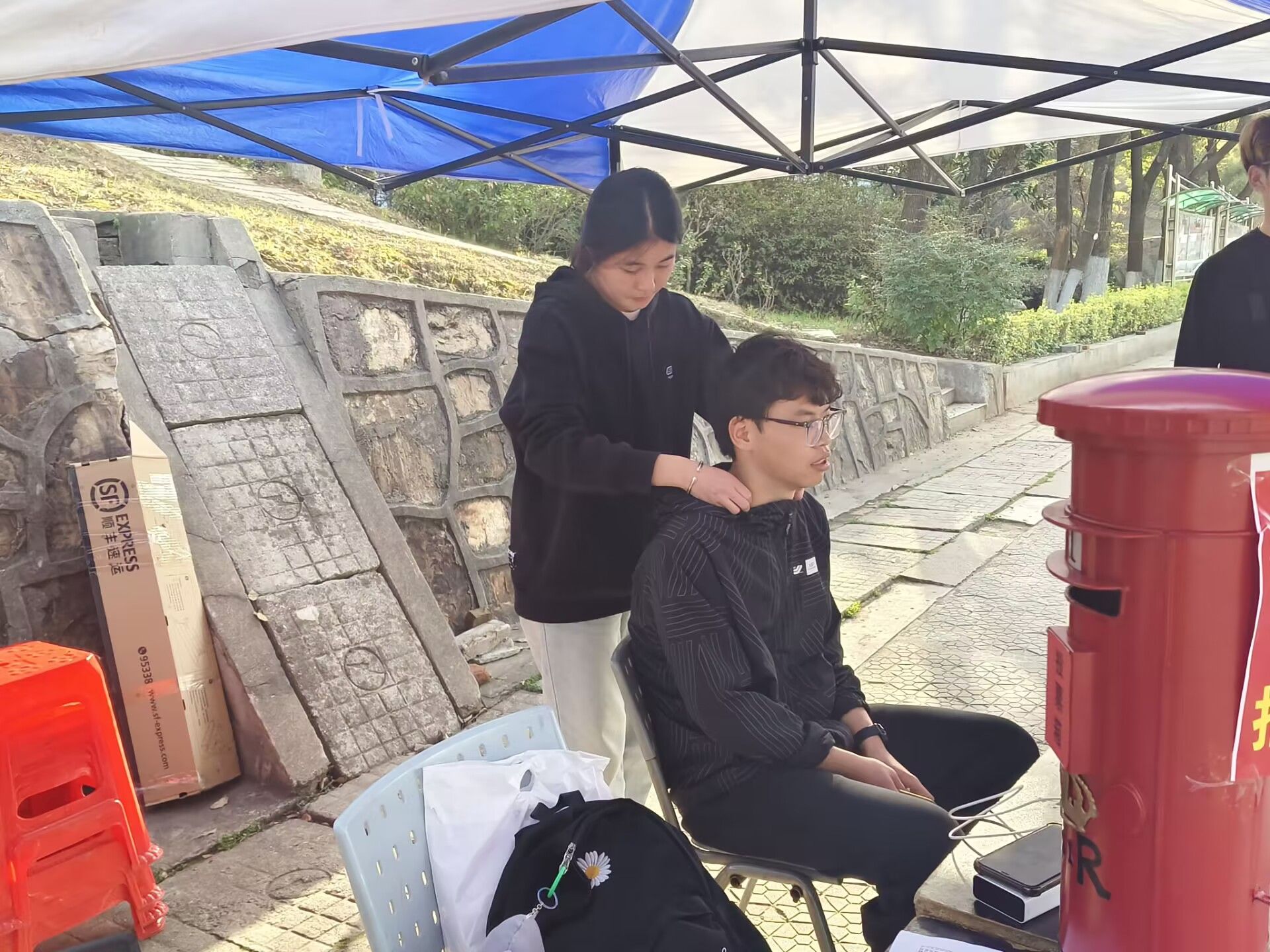 2024年3月14日晚上,所有志愿者去到2138CC太阳集团107学习按摩手法。3月19日早上,2138CC太阳集团学雷锋志愿服务活动在2138cc太阳集团文化长廊正式开始,志愿者们布置活动场地,一同将帐篷搭好,摆放好物资并用音响播放音乐,手拿手举牌,吸引老师和同学过来体验按摩;志愿者们在按摩期间为老师们讲解了此次活动的主旨“学习雷锋,帮助老师们放松”并在按摩结束后送上祝福,将小零食送给老师;一些同学主动过来参加活动,通过关注“脆升升”抖音官方账号来获取抽奖次数后,一部分同学拿到了一包小零食,另一部分在体验完按摩后对志愿者们赞赏有加。在此期间志愿者们为同学们科普雷锋精神,使同学们对雷锋精神有了更加深刻的了解。活动持续进行了2天,3月20日下午值班结束后,由青工部干事将物资整理好放回2138CC太阳集团画室。外宣部干事将本次志愿活动情况反映给赞助商。