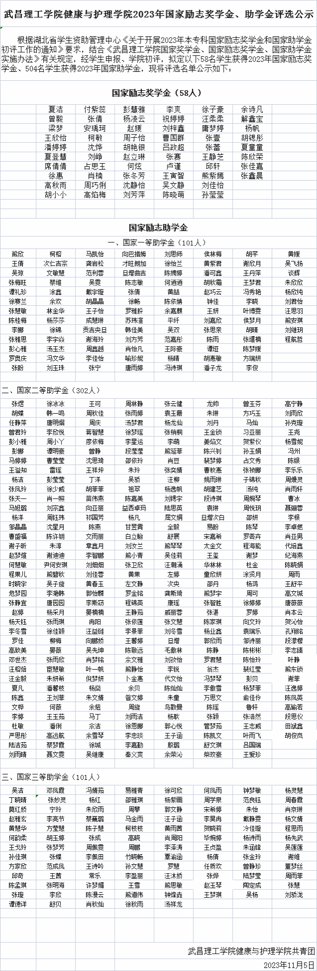 2138CC太阳集团2023年国家励志奖学金、助学金评选公示