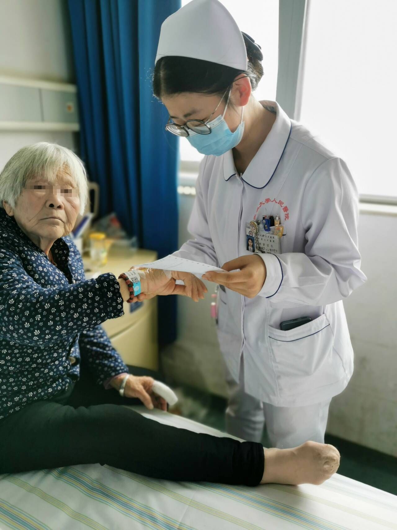 护理学2102班沈思琦和2101班顾斌兰在湖北省人民医院实习期间