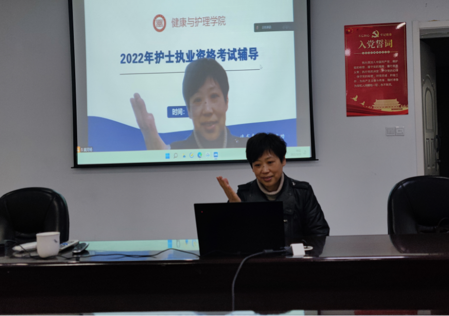 为让学生更有针对性地备考护士执业资格考试,提高学院护士执业资格证考试的通过率,助力学生就业,2022年3月23日晚,张红菱院长及李强副院长通过线下、线上方式为学生们做了一堂生动的护士执业资格证考试辅导讲座。