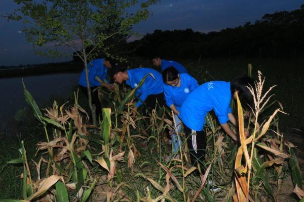 开始的时候,由于很多大学生都没有亲自掰过玉米,所以出现了很多问题,例如:玉米棒上有蜈蚣、有虫子;玉米地杂草齐人高,志愿者们都是在草里找玉米;玉米叶让有的志愿者皮肤过敏……志愿者们客服内心对蜈蚣、虫子等的恐惧,经过一个多小时的劳动,荷塘边的玉米被“一扫而光”,他们将丢在地上的玉米棒装在袋子里,由团队里的男生将装袋的玉米一袋袋的扛到宽敞的地方。由于田埂很狭窄,一不小心就有掉到池塘的危险。但在大家的齐心协力下,不仅顺利快速地将玉米收完了,而且将收割的玉米装袋运走。