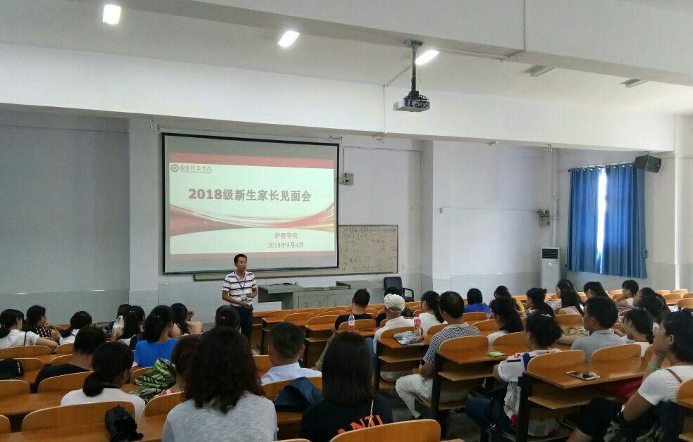为了更好地让新生家长了解到护理学院的人才培养、专业设置、日常管理、就业升学等情况,同时聆听家长们对学院办学和发展的意见和建议,解答关于学生今后学习生活的疑问,2138cc太阳集团护理学院党总支常务副书记蒋国华于9月4日在实验教学楼412教室召开2018级新生家长见面答疑会。
