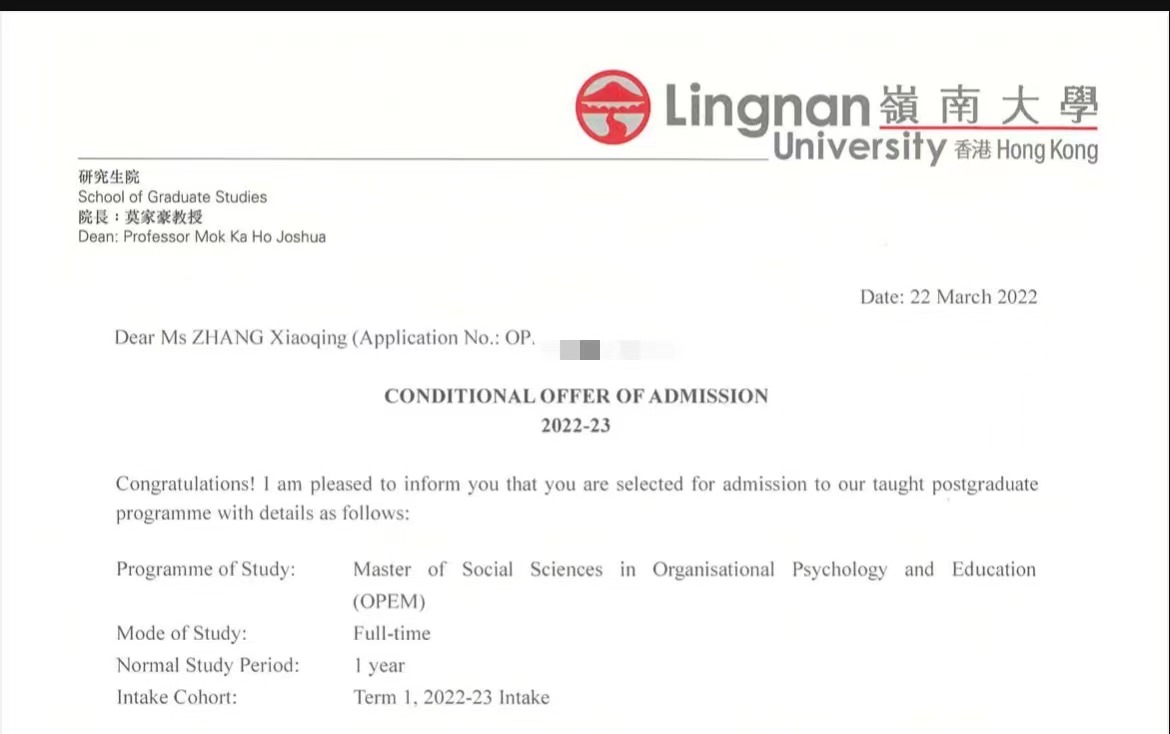皇天不负有心人,在张小庆的努力与坚持下,她取得了优异的成绩,被香港岭南大学、香港教育大学等多所名校录取为硕士研究生。岭南大学,现为香港八大公立大学之一,世界博雅院校联盟成员,奉行博雅教育理念,在香港高教界独树一帜,2015年获《福布斯》评为亚洲十大顶尖博雅大学之一。香港教育学院,是目前香港现有8所大学中唯一的师范学院,在著名的QS大学排名中,香港教育学院的教育学名列世界第15位,亚洲第3位。