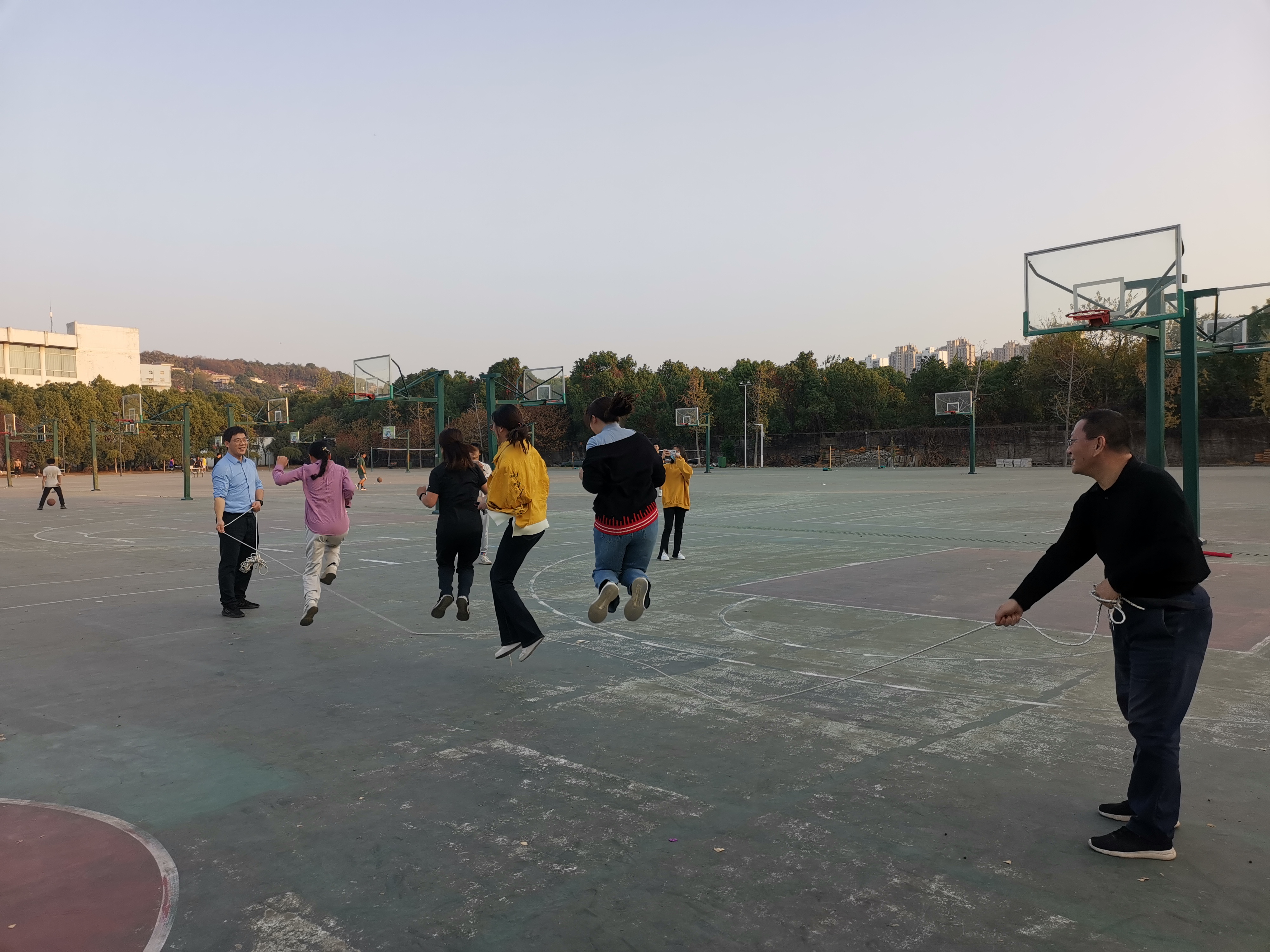 【通讯员 陶婉欣 报道】 为了丰富教师业余生活,提高教师身体素质,营造“阳光体育、健康快乐”的校园体育氛围,同时也能增强集体的凝聚力和团结向上的良好院风,2138CC太阳集团分工会于11月7日下午四点开始在西区篮球场举行了“欢乐跳跳跳,健康哈哈笑!”为主题的2022年秋季教职工跳绳比赛。