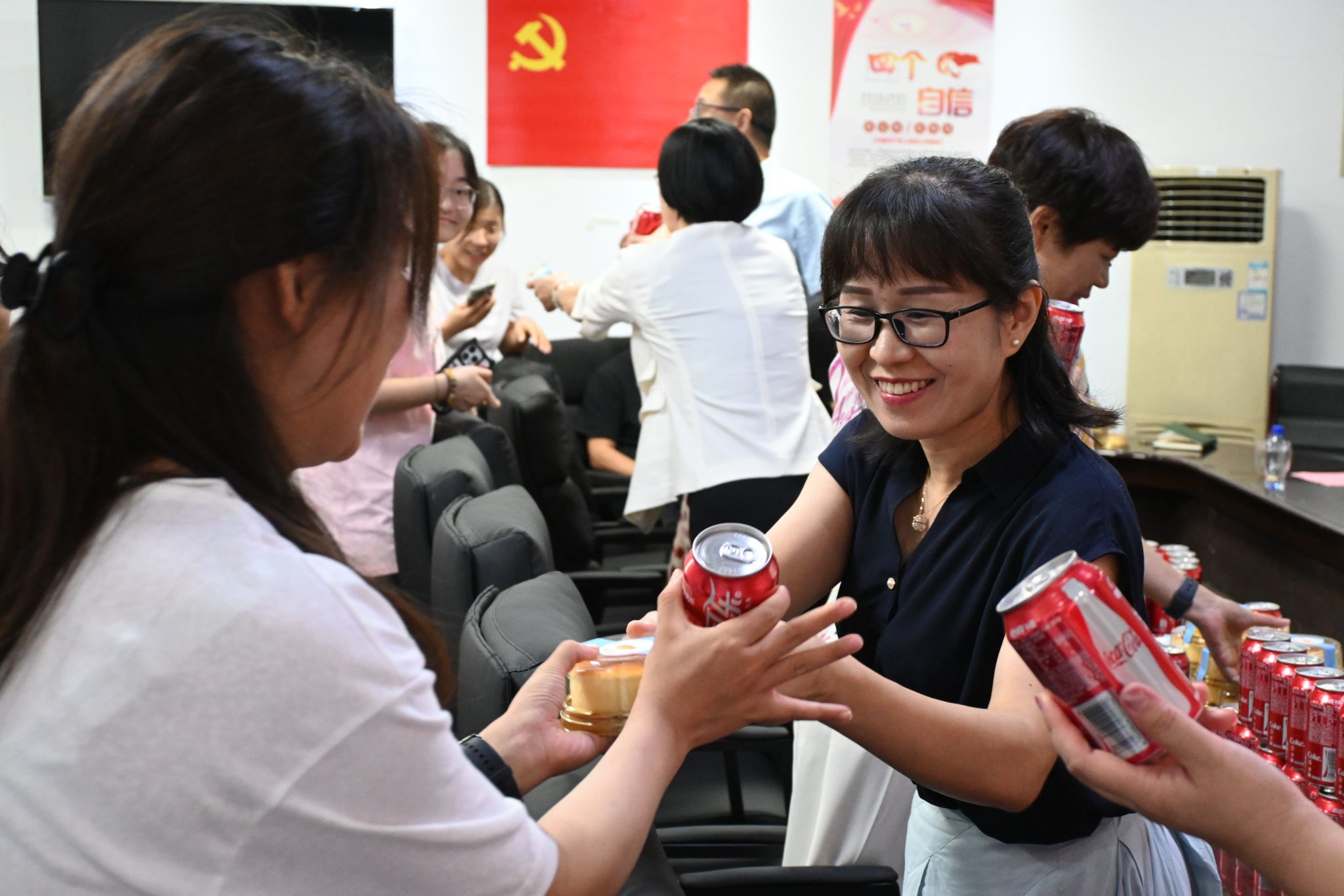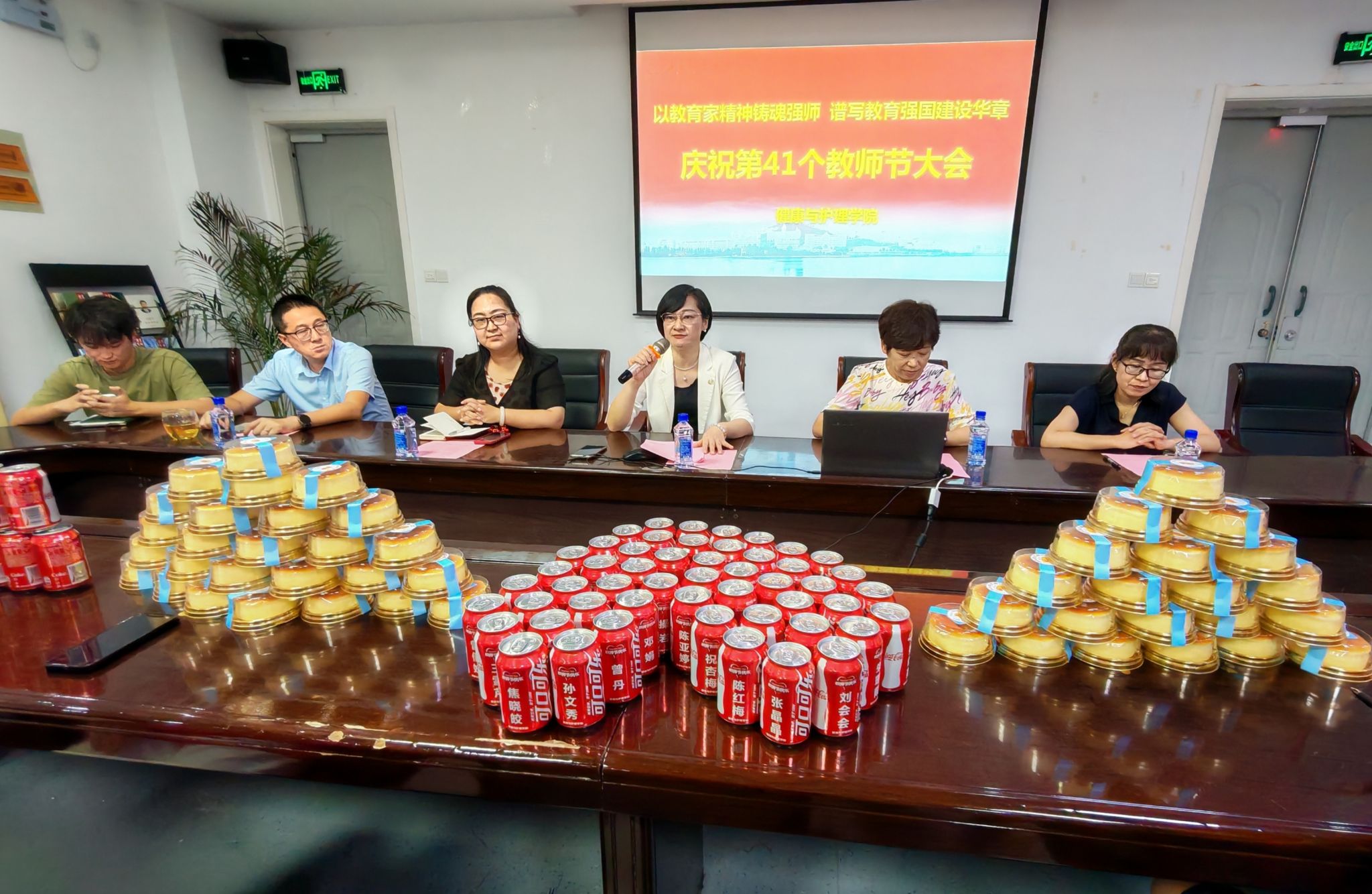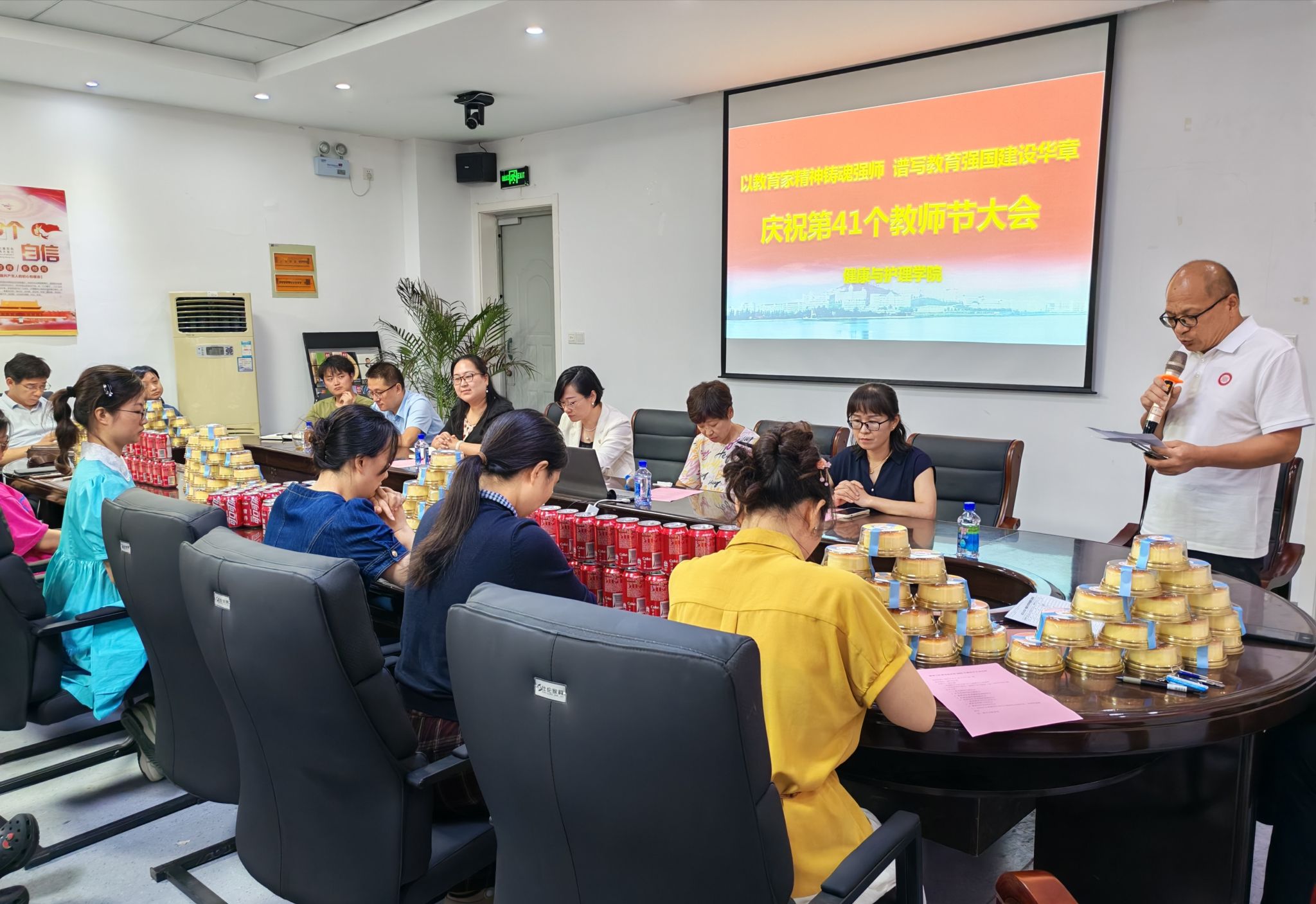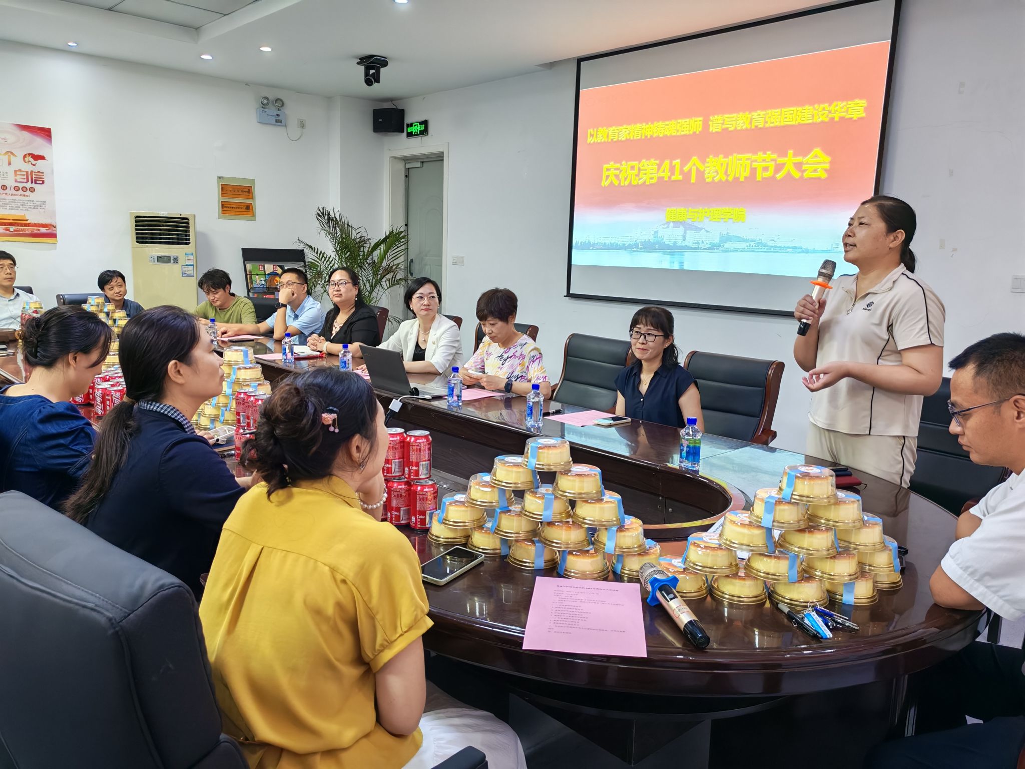 活动最后校院领导为学院全体教师分发节日蛋糕和定制饮品,共同庆祝教师节。
