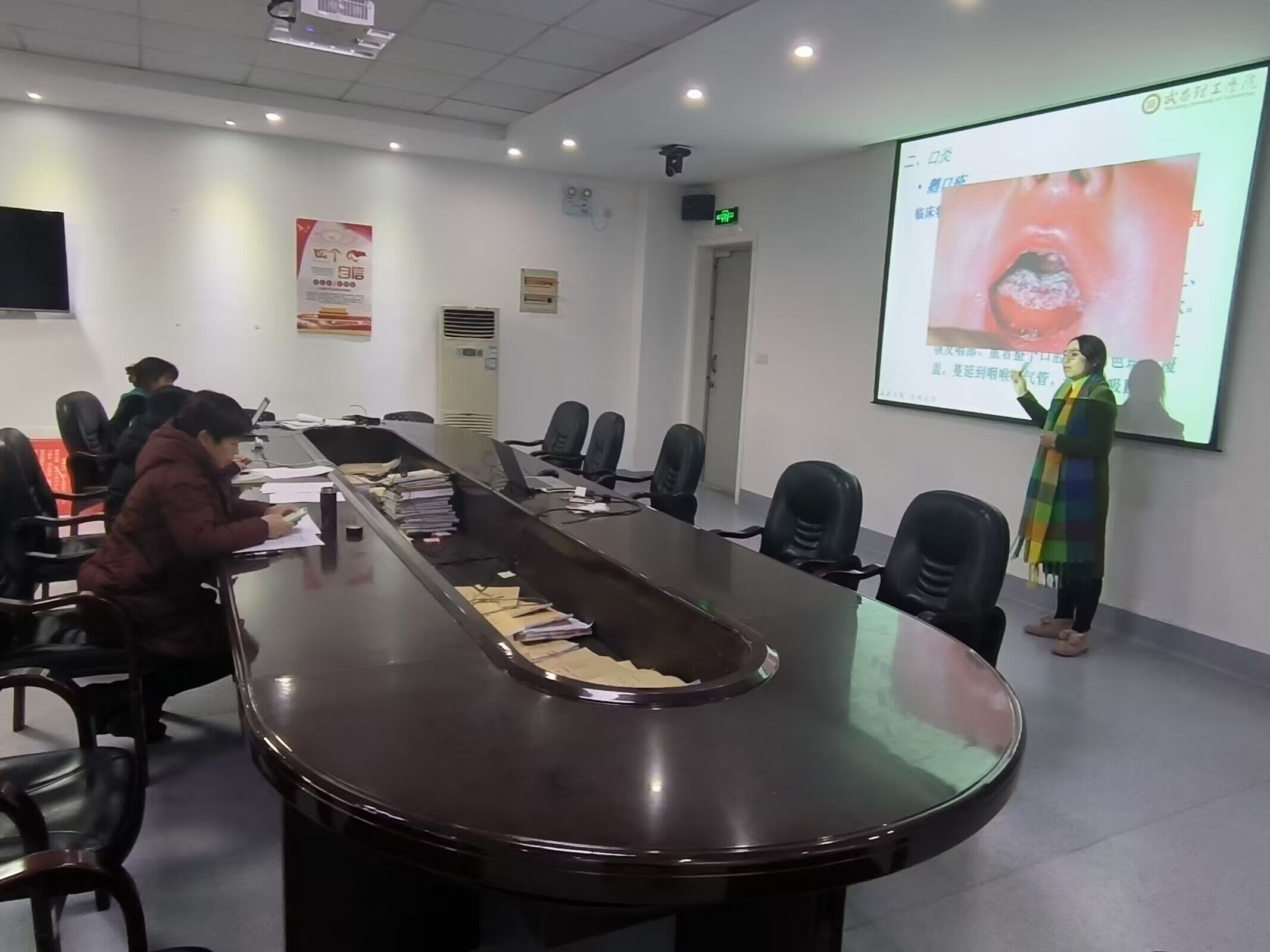 大赛开始后由各位参赛教师轮流上台,根据自己精心准备的PPT进行课程展示。她们准备了自己最擅长的课程内容进行展示和讲解。殷茜茜老师讲了心功能不全,黎湘艳老师讲了器官移植,田维老师讲了慢性心力衰竭,杨希老师讲了人体解剖学中的消化系统,李文琪老师讲了病人的安全与护士的职业防护……比赛中每位老师都发挥了出色的教学实力,展示了自己的教学特色与风采。比赛经过激烈的角逐,最终黎湘艳、田维两位老师获得一等奖,曾丹、殷茜茜两位老师获得二等奖,张晶晶、杨希、李文琪、加璇璟四位老师获得三等奖。