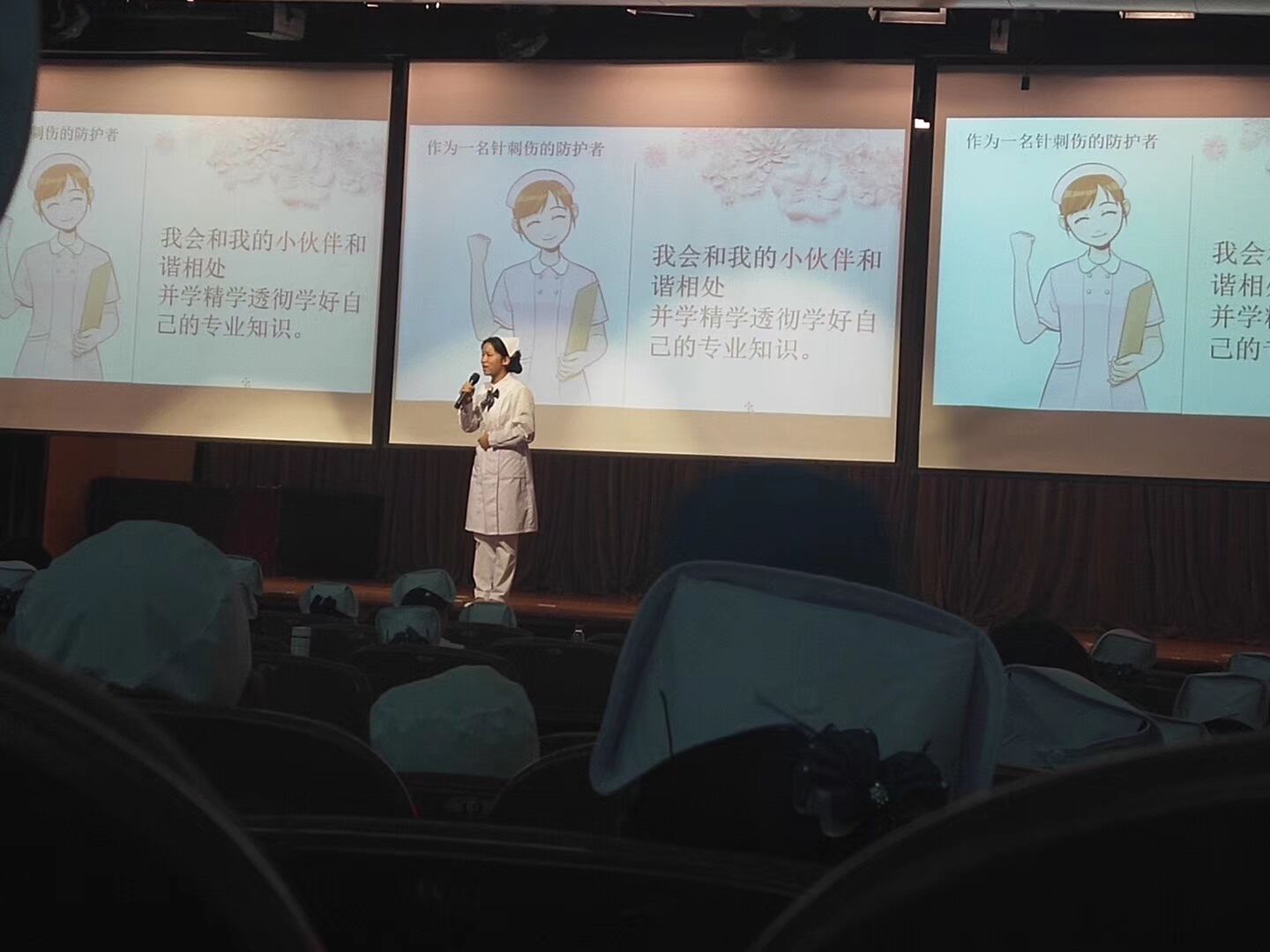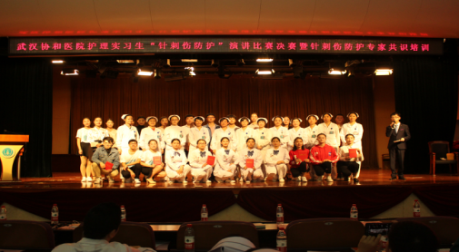 此次“针刺伤防护”演讲比赛,历时两个多月,初赛在来自18所院校实习生组成的63个小组之间进行,初赛中获胜的20组团队进入复赛,最终决出10组团队进入决赛。我院护理实习生们在此次比赛中表现优异,2组选手两组挺进决赛,与湖北中医药大学、郑州大学等学校实习生角逐决赛冠军。我院学生冯梦思、车毓颖、李思敏组成的团队,以“古人以剑治天下,我用银针定江山”为题,深情阐述了针刺伤对医务人员的危害,并通过声情并茂的演讲,还原了针刺伤后的心路历程,让现场观众对针刺伤有了更深刻的认识和感悟。代坤的“今生今世愿有你------吾生愿牵针”以“针”的角度阐述了作为一根针的前世今生,以及与护生之间的故事,引起在场全体实习生的强烈共鸣,并获得在场评委老师的一致好评。