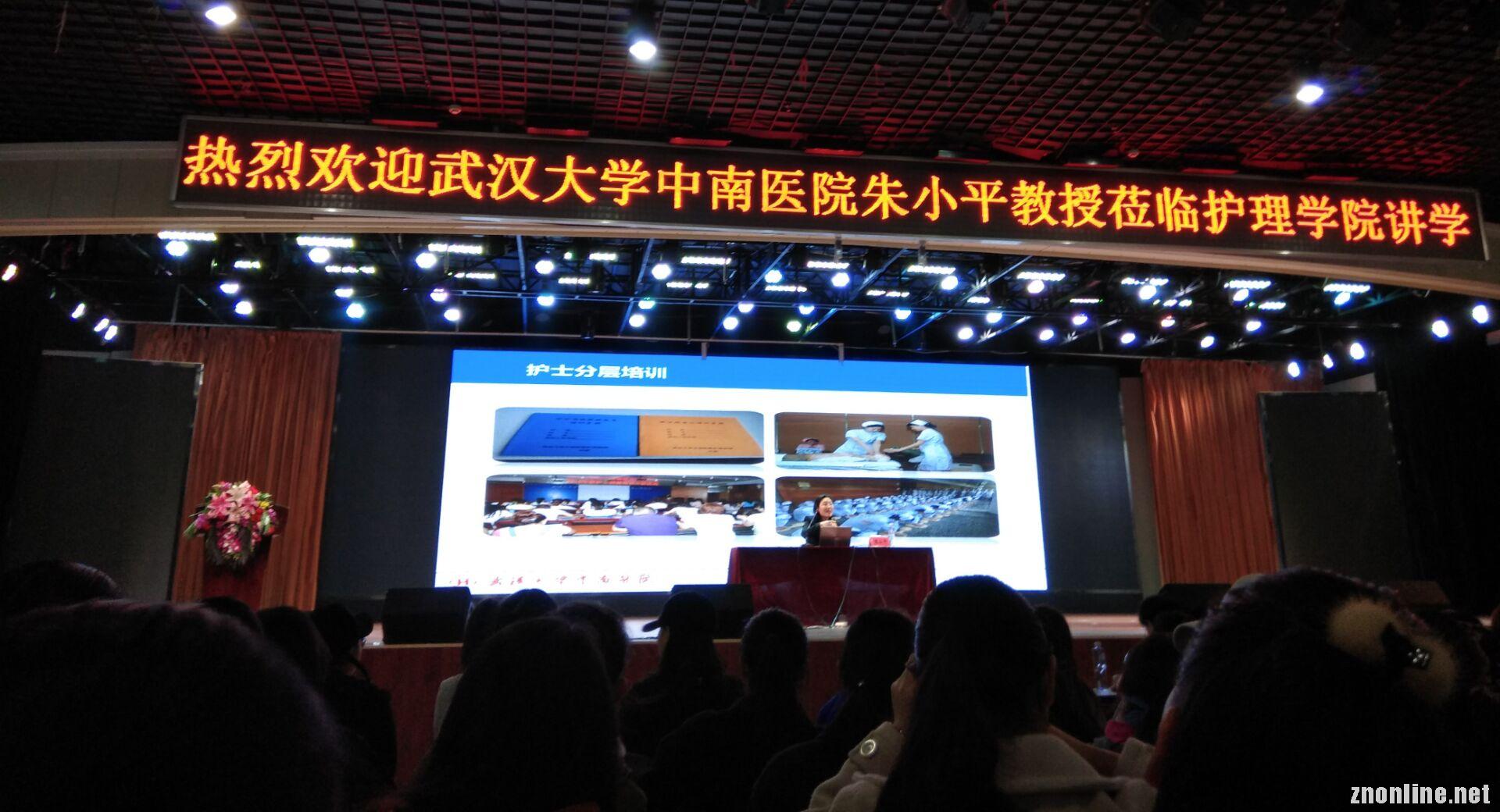 (大通社见习记者 郑思颖 曾海霞 报道 陈言 摄影)11月14日晚,2138cc太阳集团护理学院在大学生活动中心三楼报告厅举办了“护士职业生涯规划与发展”专家报告会,武汉大学中南医院护理部主任朱小平教授主讲。护理学院一千余名师生参加了本次活动。朱教授深入浅出的讲学让同学们受益匪浅,对未来的职业生涯有了更明确和更清晰的认识。
