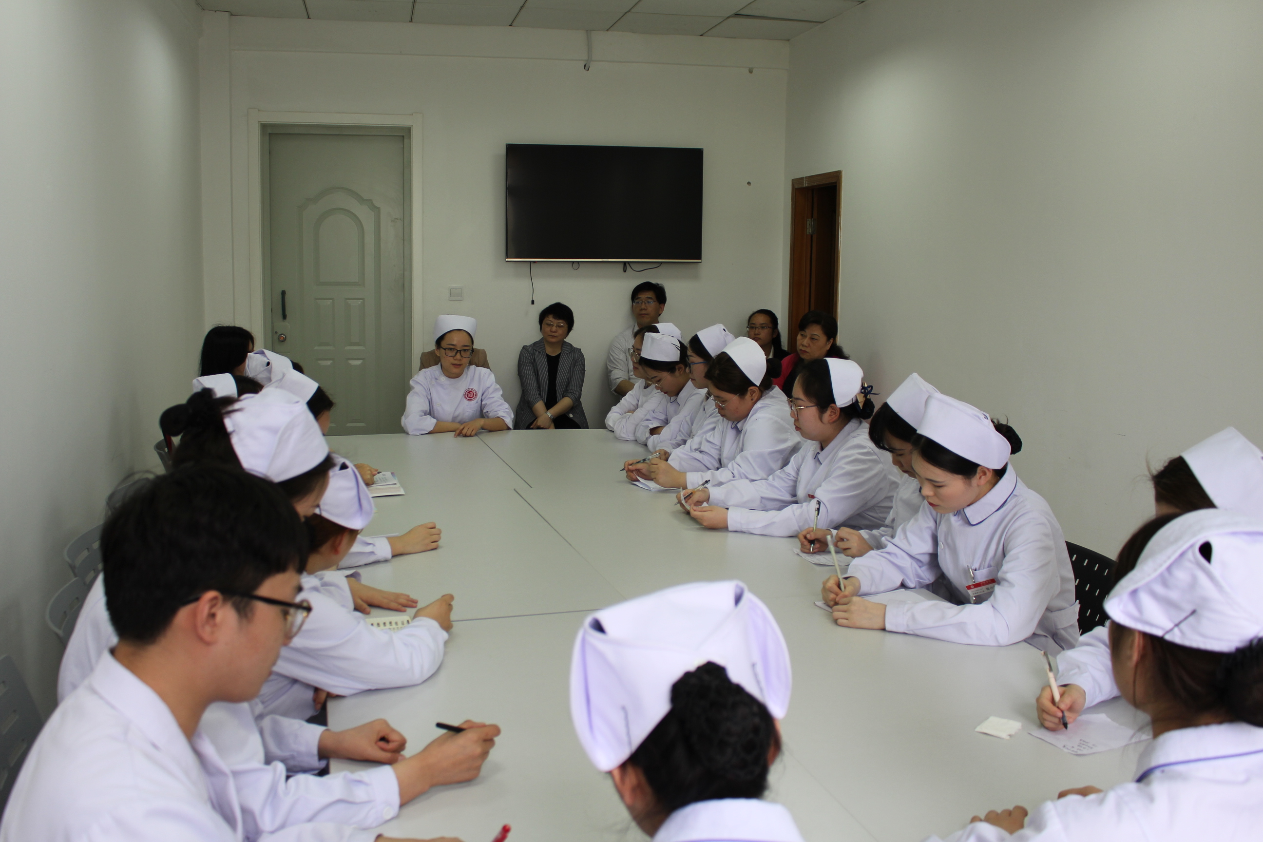 接着,大家到306会议室针对情景模拟教学案例的选择、实训课的时间和人员分组、模拟教学师资培训等方面进行深入讨论。老师们踊跃发言,一致认为,案例选择要对接临床,案例要真实;要持续加强情景模拟教学师资的培训,提升业务素质;要根据学生能力,充分讨论案例,让学生先熟悉案例的理论知识点;要注重引导性反馈。
