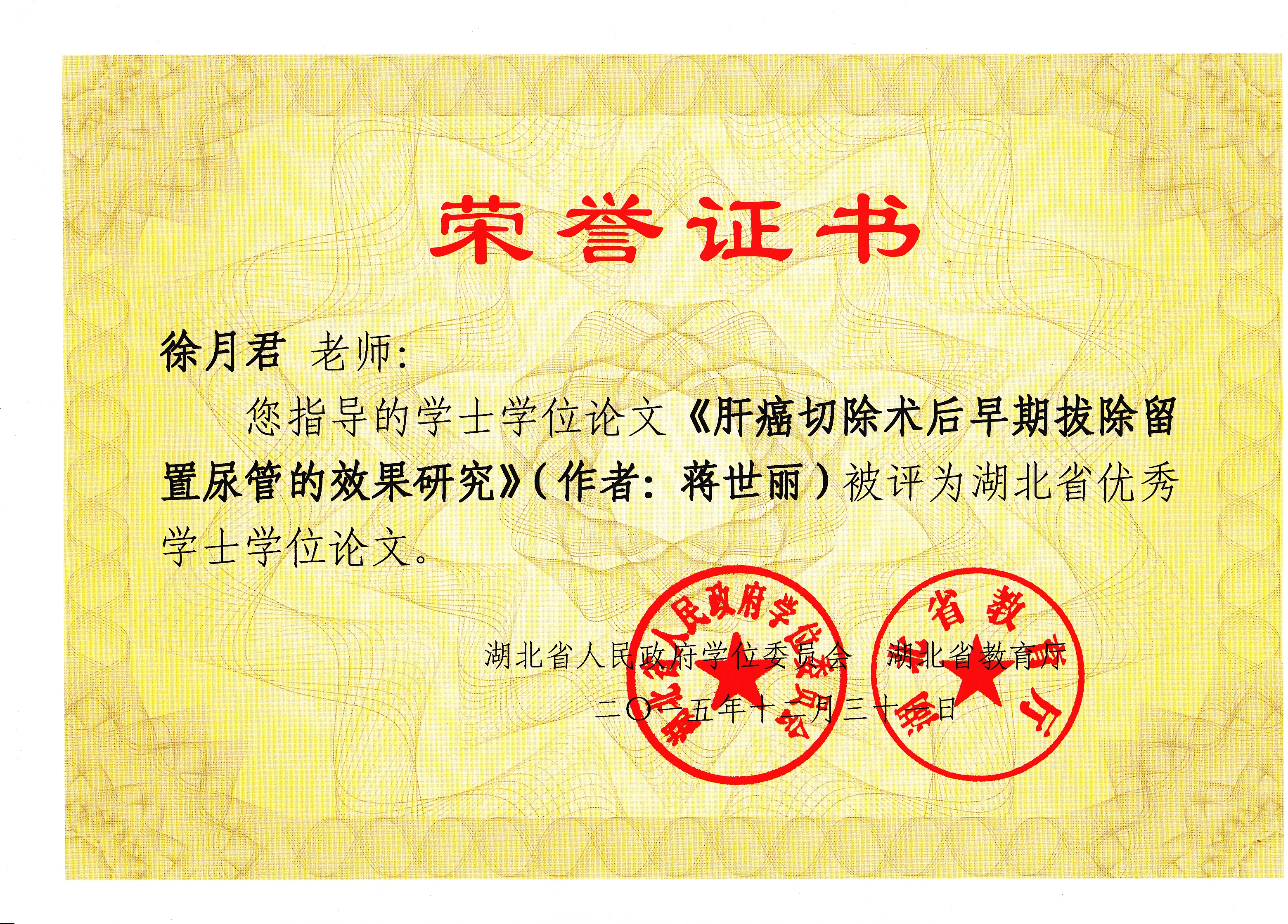 本科毕业论文不仅是检验毕业生大学学习成果的最重要也是最后的一个环节,也是体现学校教育教学质量、 办学水平的重要评估指标之一。根据《省教育厅关于公布2015年全省优秀学位论文评选结果的通知》,我院徐月君老师指导的毕业论文获评全省优秀学位论文。