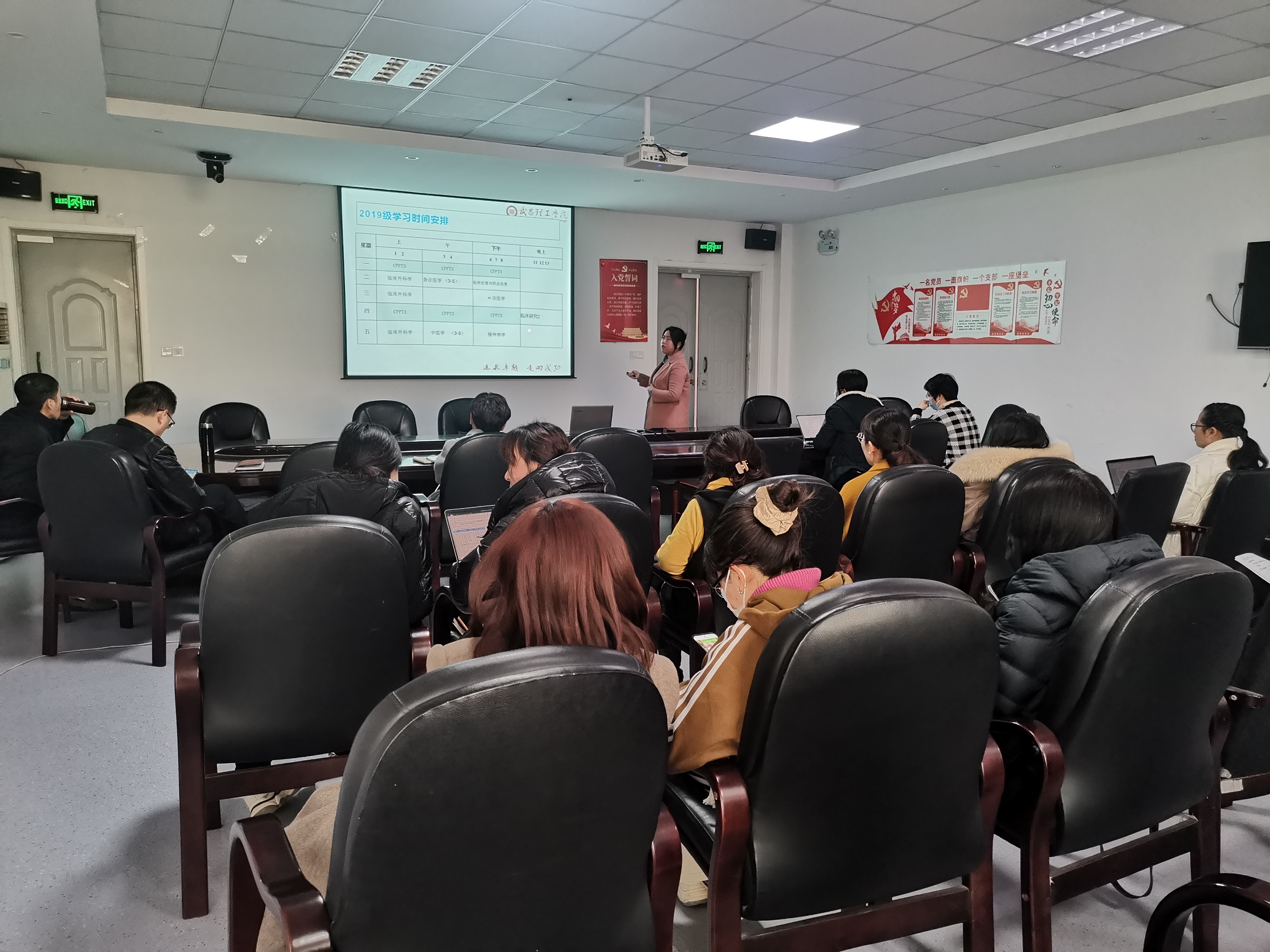 随后徐月君老师进行了分享汇报,徐月君老师是在武汉大学医学院临床学院进修学习,她主要进修的课程为临床病理病生及治疗学、诊断学、诊断学实验等课程。她为大家分享了武汉大学医学院的教学改革、课程特色、教学方法、团队协作等内容,她表示进修使自己知识得到了大幅的更新和提升,也体会到在教学中要更多尊重学生、鼓励学生。