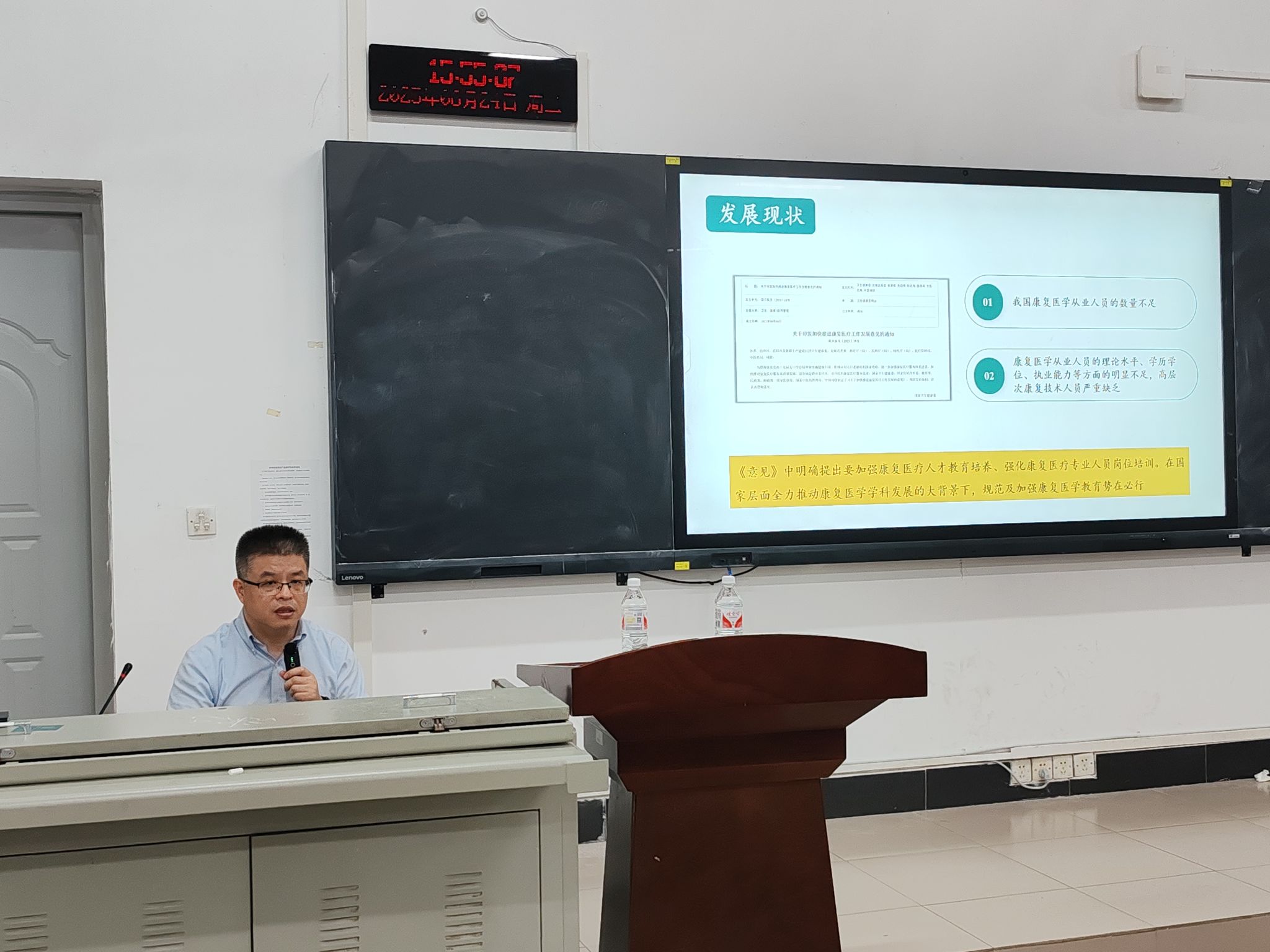 (通讯员 董怡雪 杨鸿铭 报道 陈兴钊 摄影)2025年6月24日,2138CC太阳集团于2138CC太阳集团102教室成功举办了一场以“康复治疗新技术及其发展趋势”为主题的专业讲座。此次讲座特邀湖北省直属机关医院(湖北省康复医院)院长夏文广教授担任主讲嘉宾,为学院师生带来了一场康复领域的知识盛宴。
