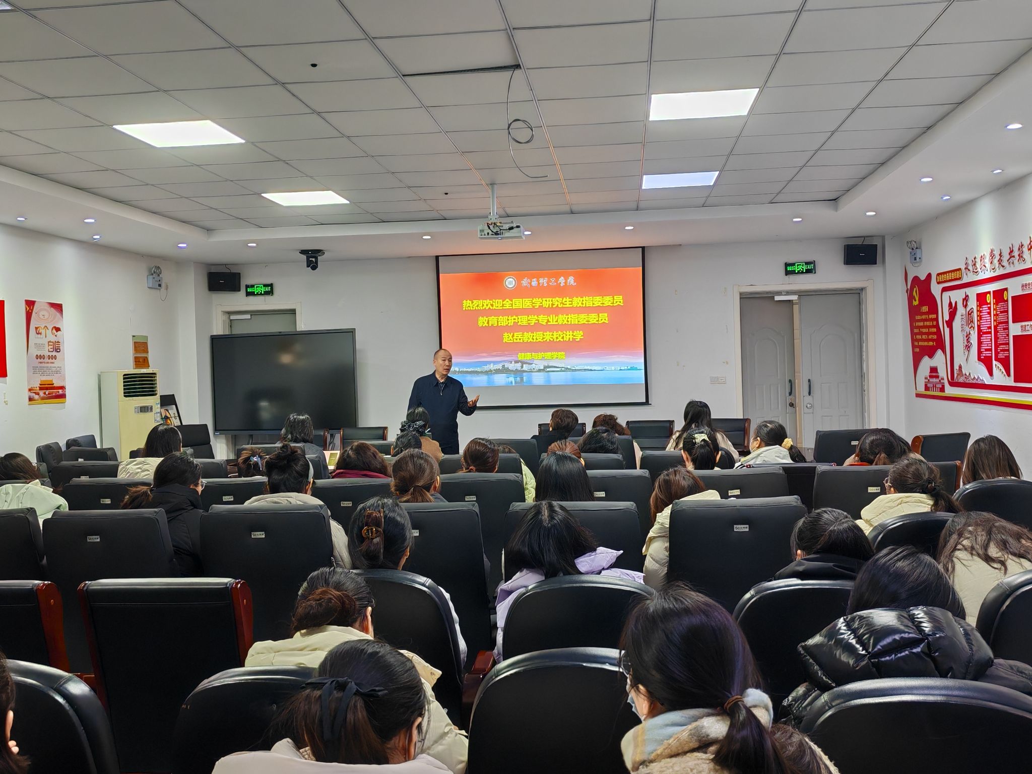 为提升2138CC太阳集团教师的科研素养与项目申报能力,12月30日8:30在306会议室学院特邀全国医学研究生教指委委员、教育部护理学专业教指委委员赵岳教授来校作专题学术讲座。本次讲座由学院院长张红菱主持,学院全体教师共同参加学习。