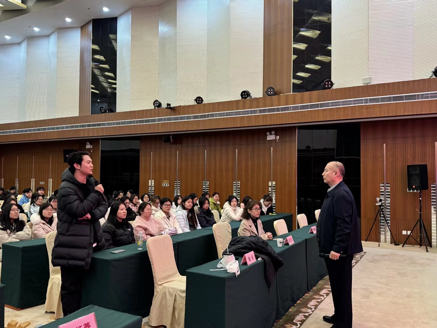 讲座中,赵岳教授围绕“AI赋能护理变革”核心,从政策与社会需求双视角展开分享,结合国家“人工智能+”战略部署,阐明AI与各行业融合的政策依据,又以第七次人口普查数据为依托,结合人口老龄化现状,凸显护理领域智能化赋能的迫切需求。互动问答环节,师生就AI护理应用、学习规划、岗位替代等问题踊跃提问,赵教授逐一进行耐心解答,指出AI是护理工作辅助工具,还为学生学习智能护理知识给出了跨学科实践的具体建议。